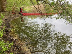 W dniu 22.04.2025 r. podjęto działania wyjaśniające dotyczące plamy substancji ropopochodnej na jeziorze Gopło. W trakcie prowadzonych czynności przeprowadzono wraz z innymi służbami obecnymi na miejscu zdarzenia, wizję lokalną.