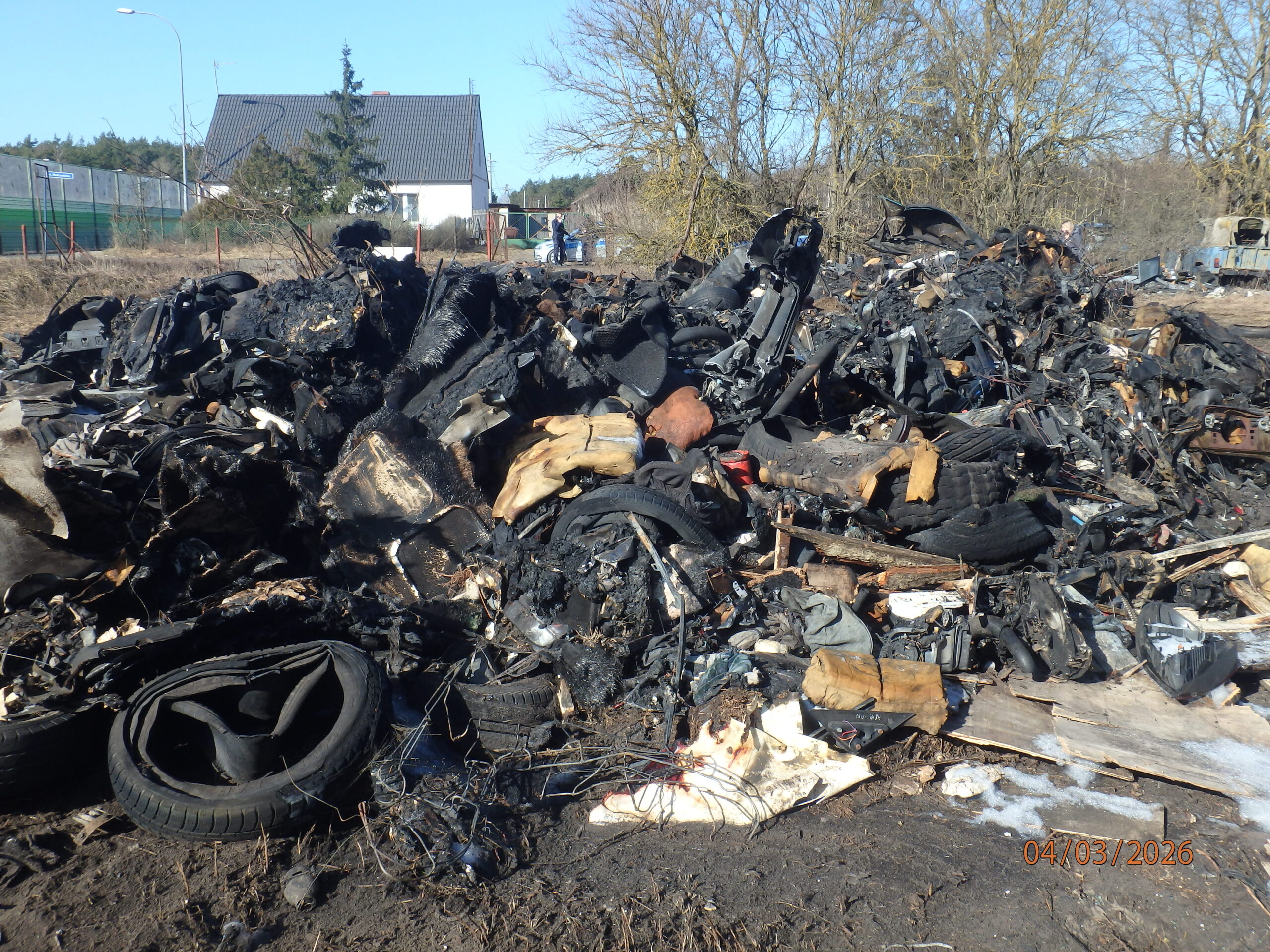 W dniu 3 marca 2026 r. w godzinach wieczornych doszło do pożaru opon na jednej z posesji w m. Zielonka, gm. Białe Błota. W związku ze zdarzeniem, inspektorzy WIOŚ podjęli czynności w celu oceny ryzyka zanieczyszczenia środowiska. Po dotarciu na miejsce okazało się, że spaleniu uległy część zużytych opon oraz fragmenty karoserii samochodowej. W wyniku akcji pożarniczej nie doszło do zanieczyszczenia cieków, zbiorników wodnych ani urządzeń kanalizacji deszczowej.